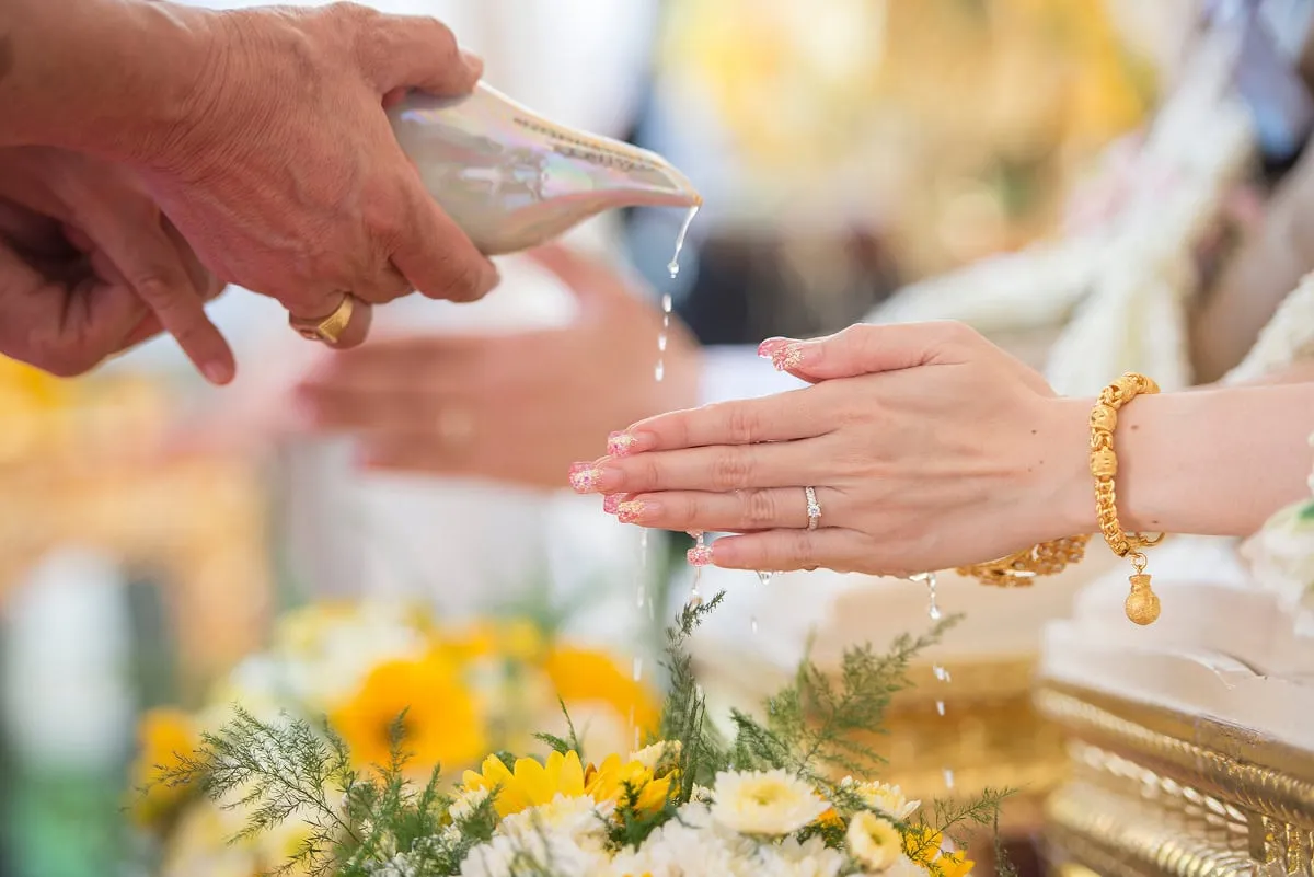 - Water Blessing Ritual (Rod Nam Sang) – Guests pour holy water over the couple’s hands, offering wishes for a harmonious life.