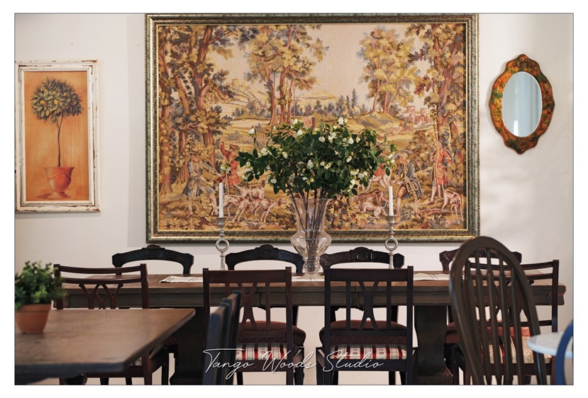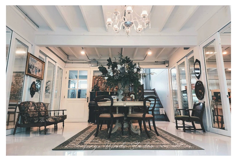 บรรยากาศภายในตกแต่งด้วยเฟอร์นิเจอร์วินเทจและงานศิลปะคลาสสิก ผสานกับความร่วมสมัยอย่างลงตัว ให้ความรู้สึกอบอุ่น เรียบง่าย แต่ยังคงความมีสไตล์ เหมาะสำหรับคู่รักที่อยากจัดงานแต่งในบรรยากาศสบาย ๆ และเป็นกันเอง